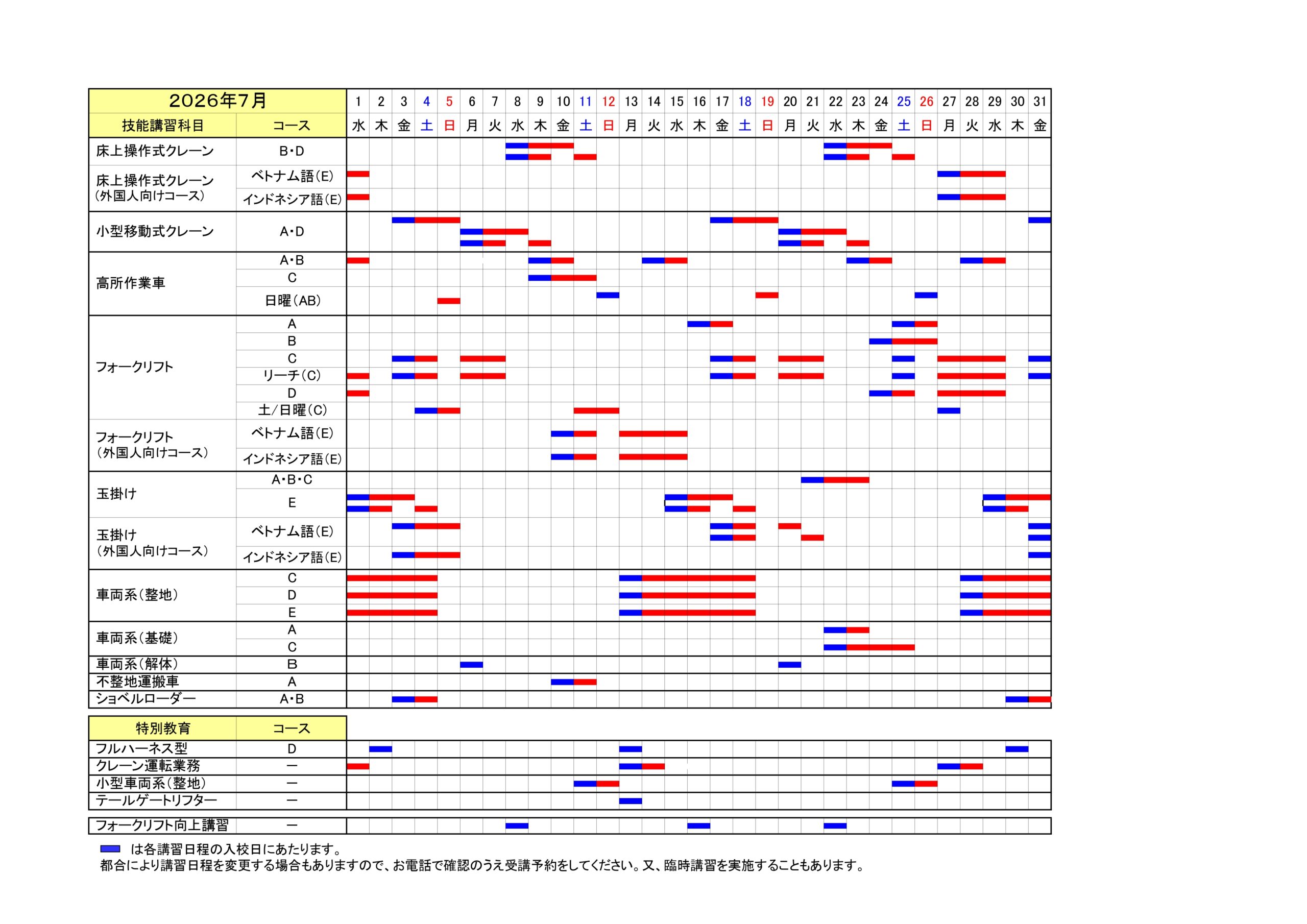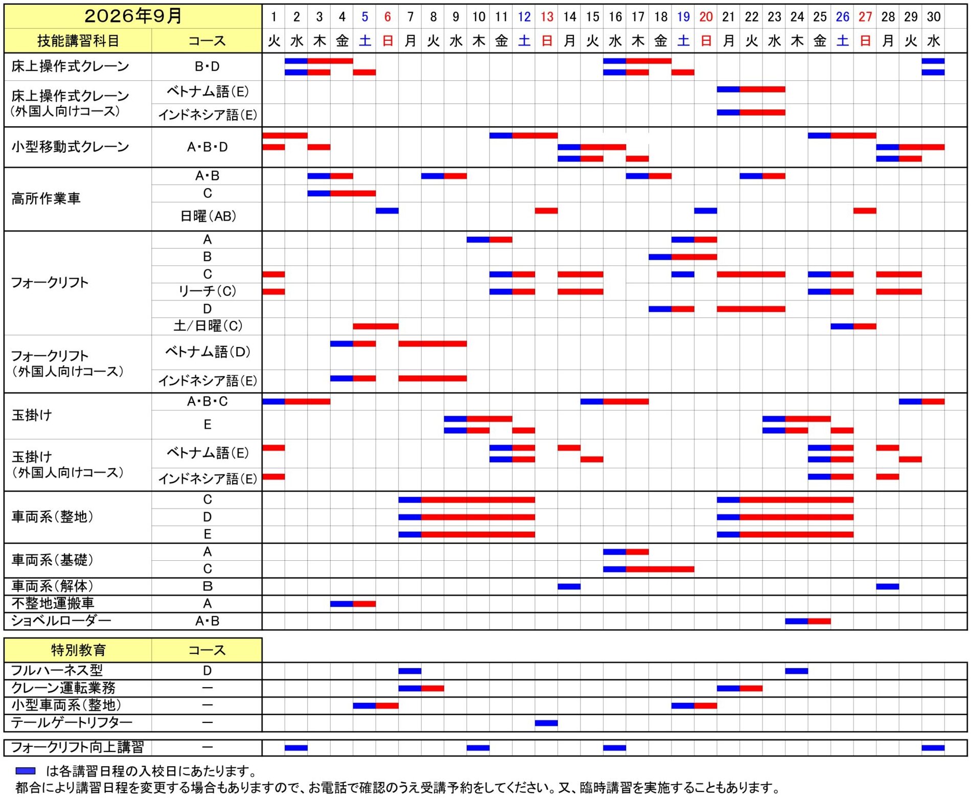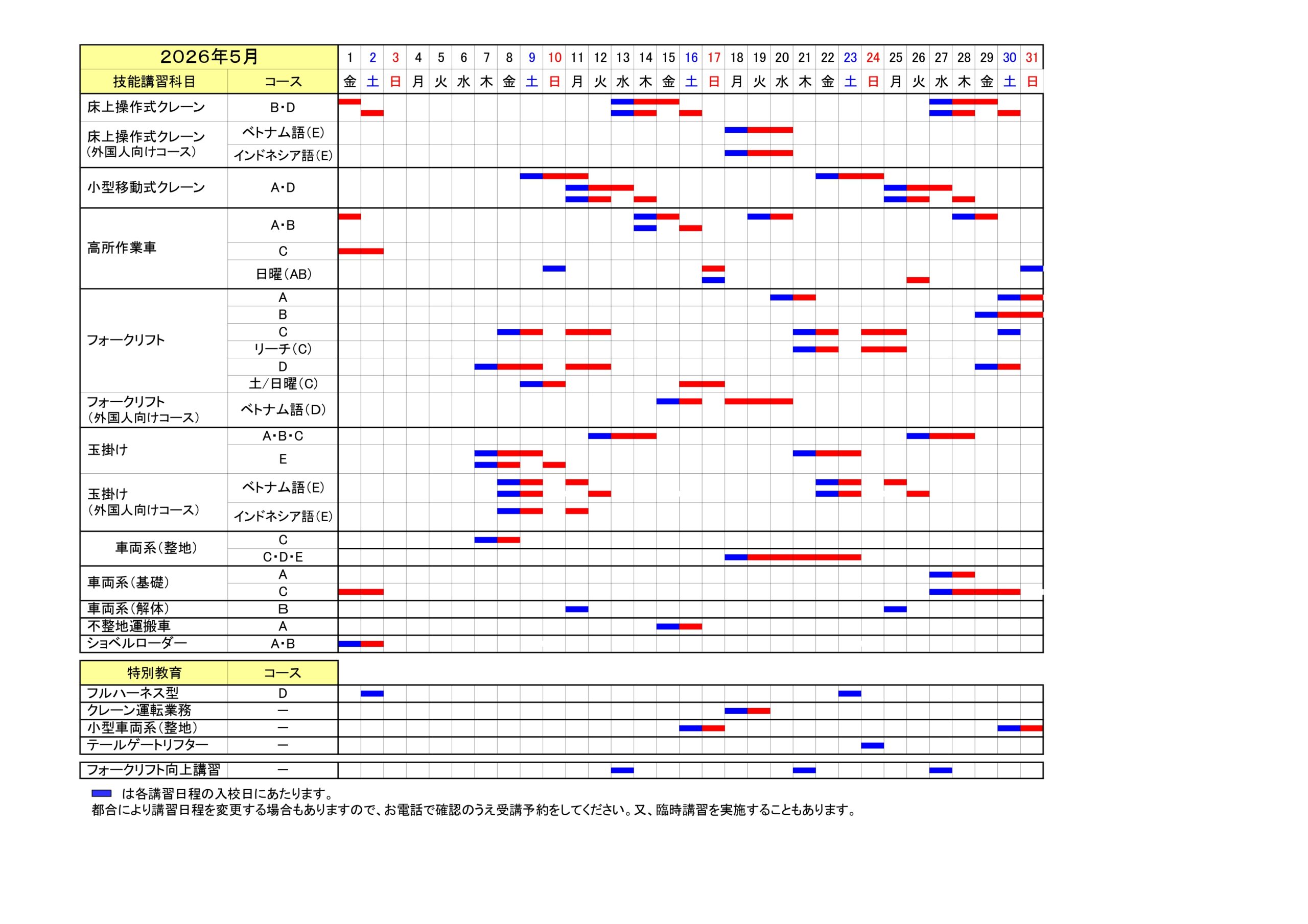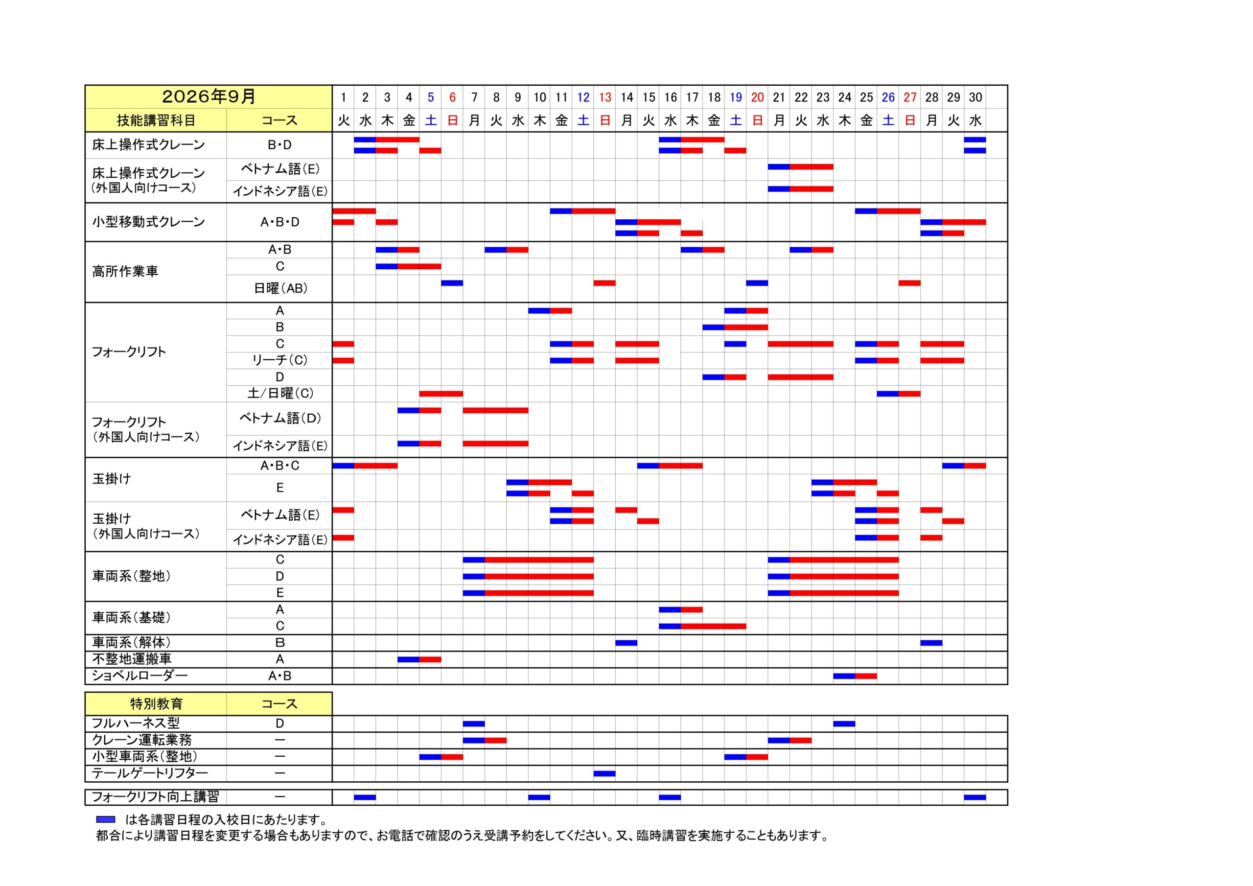 講習日程表