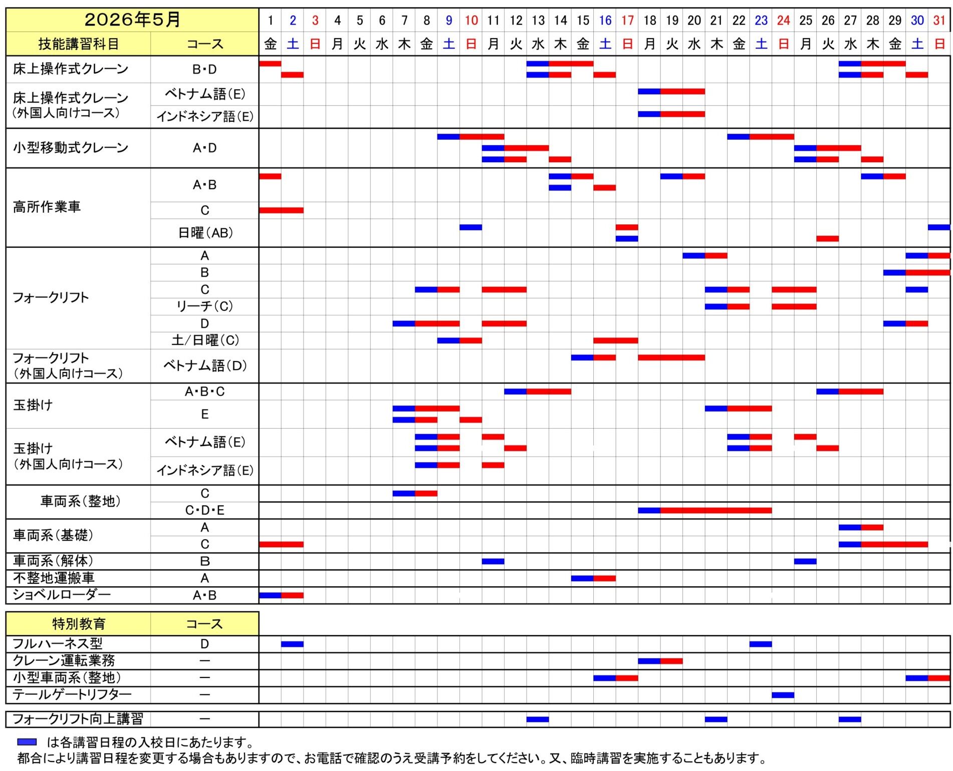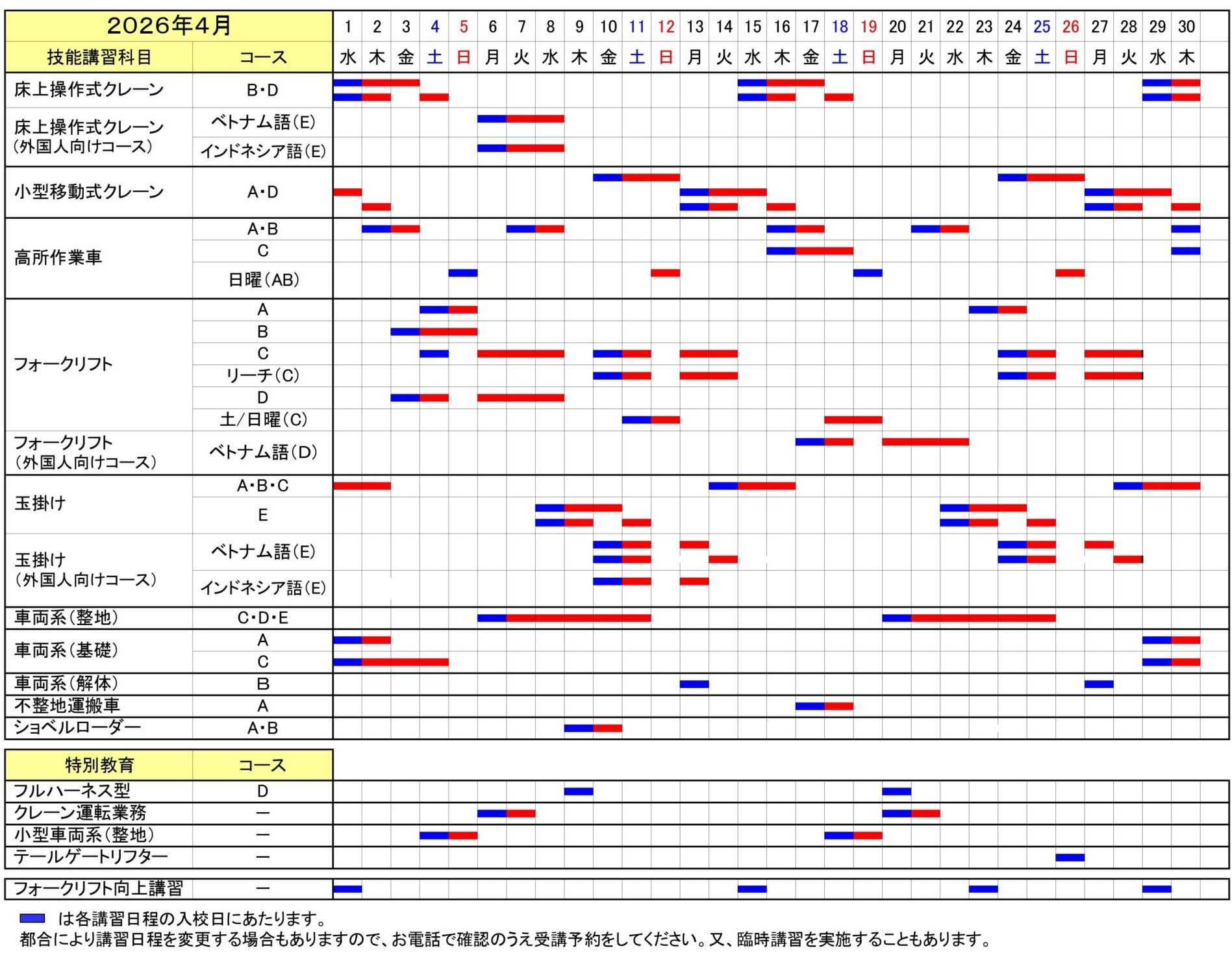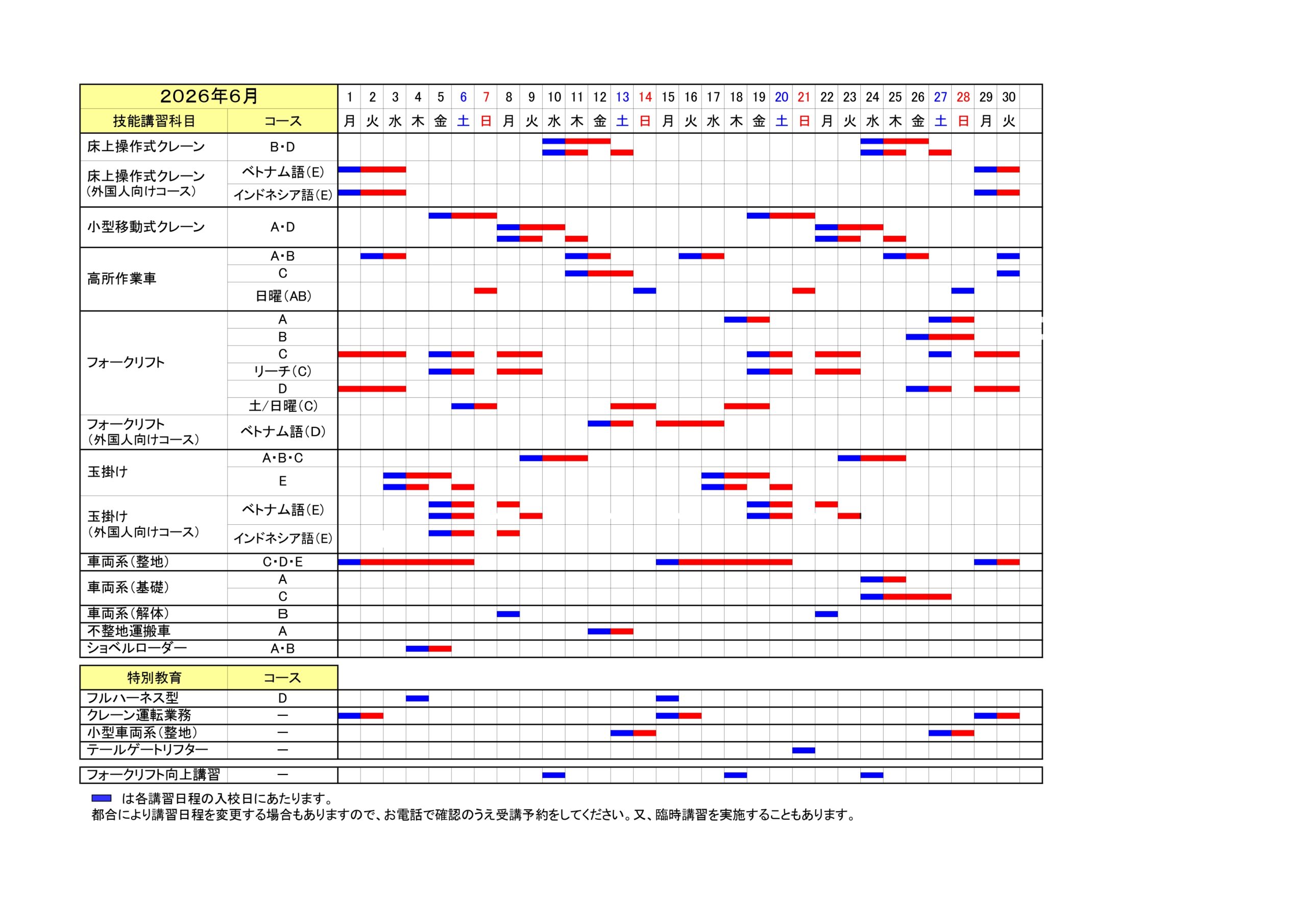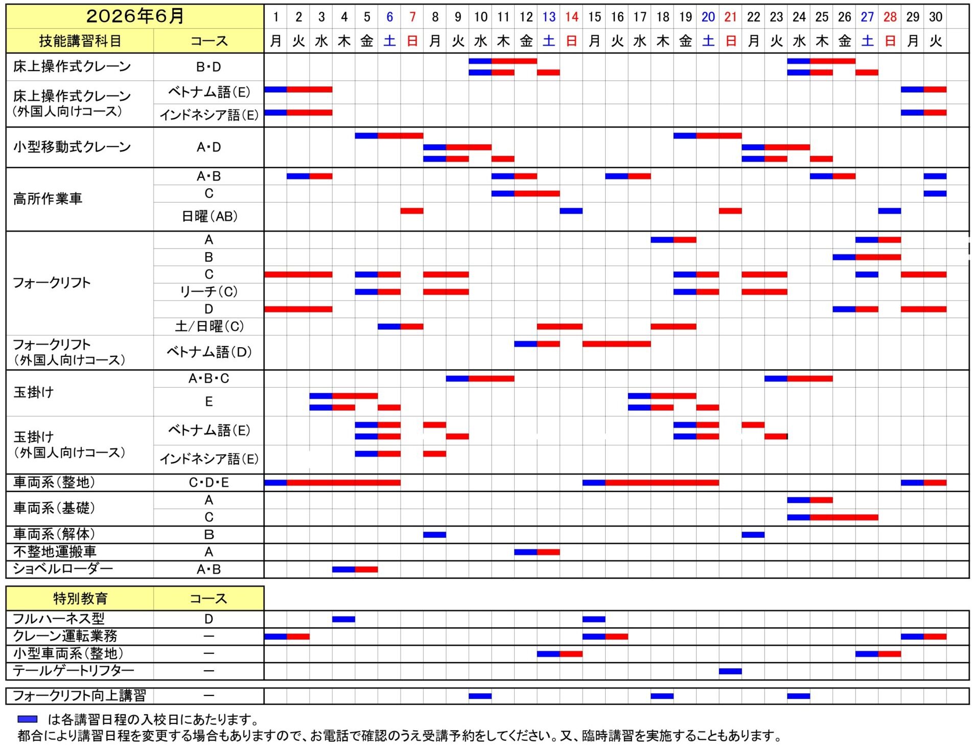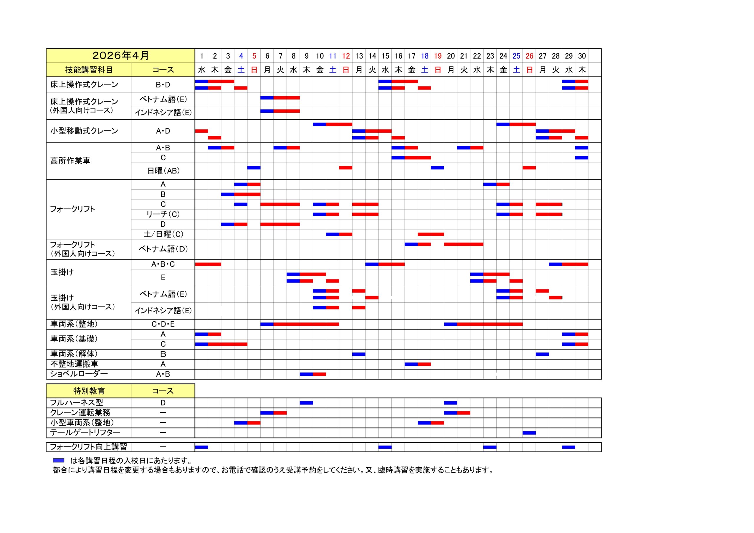 講習日程表