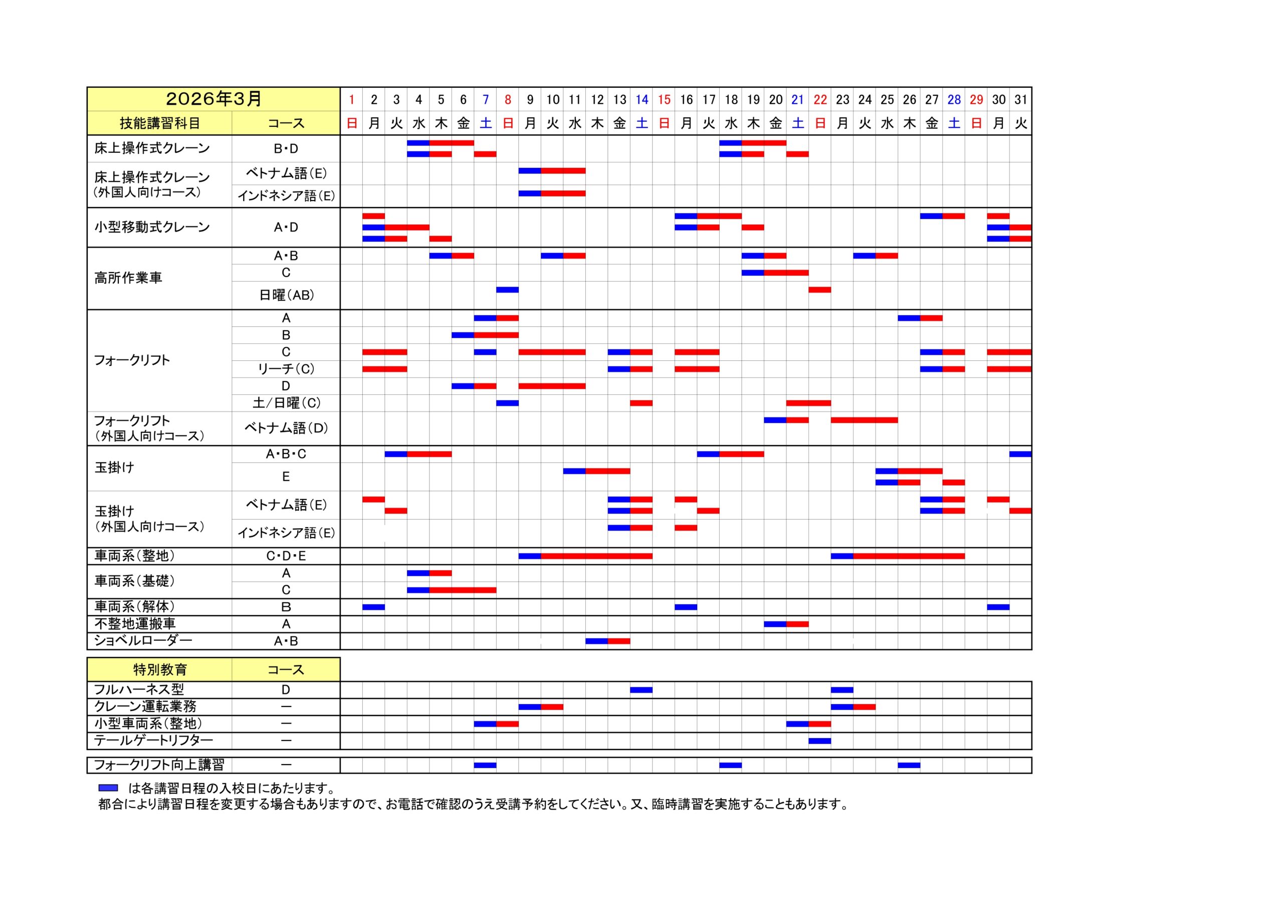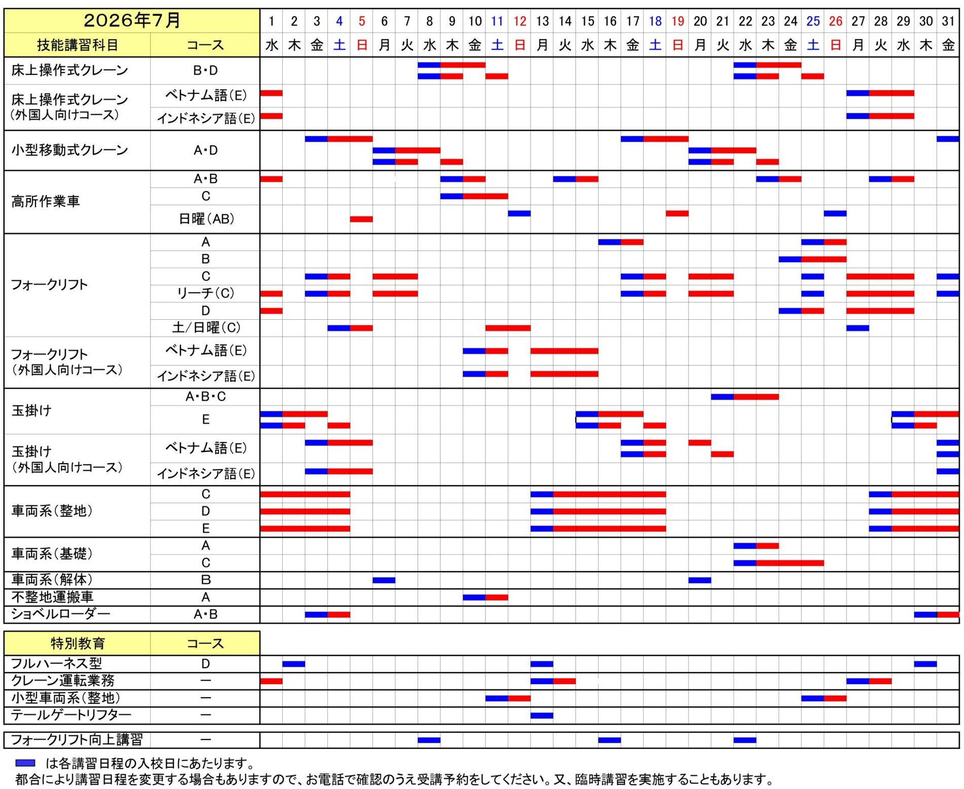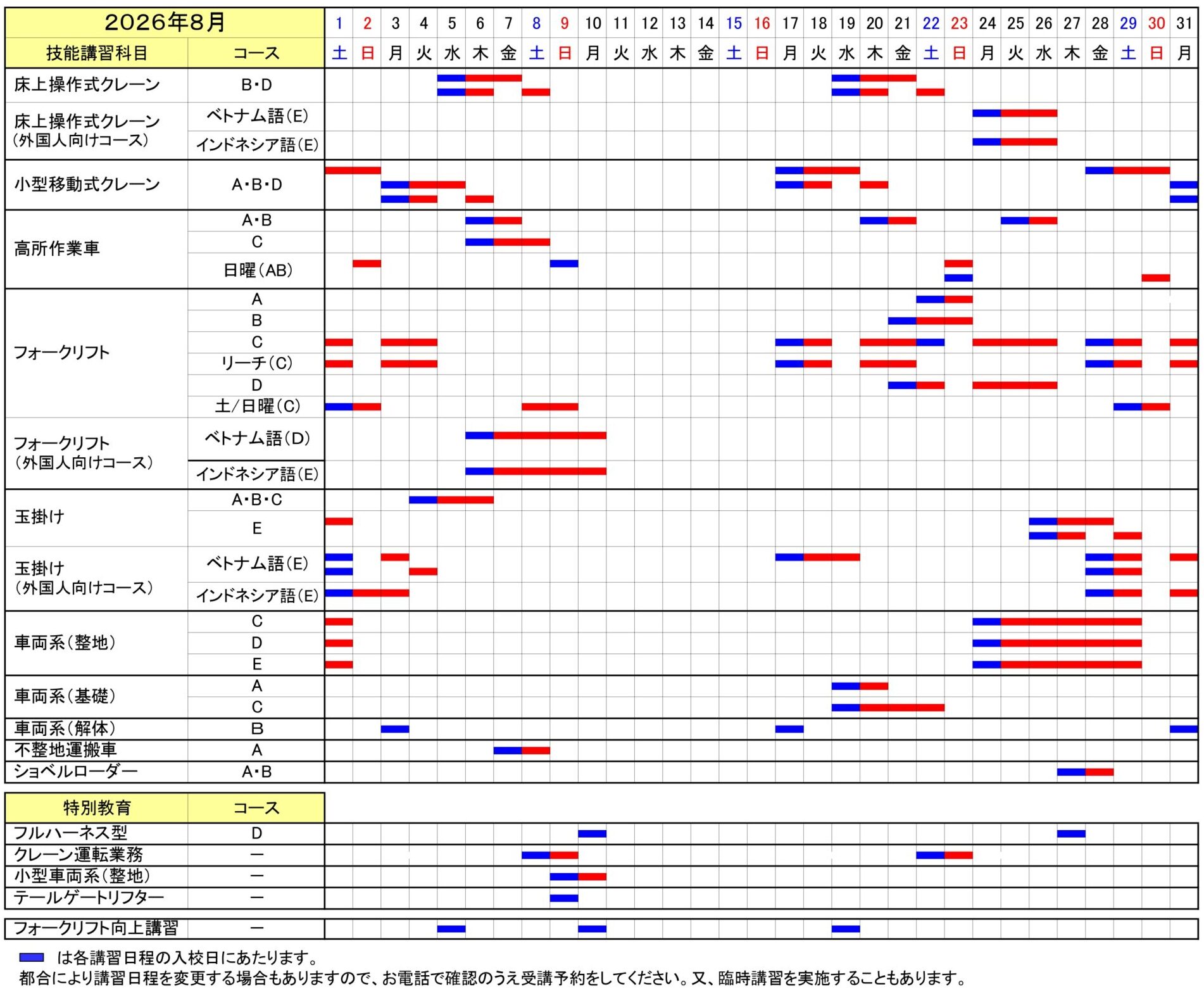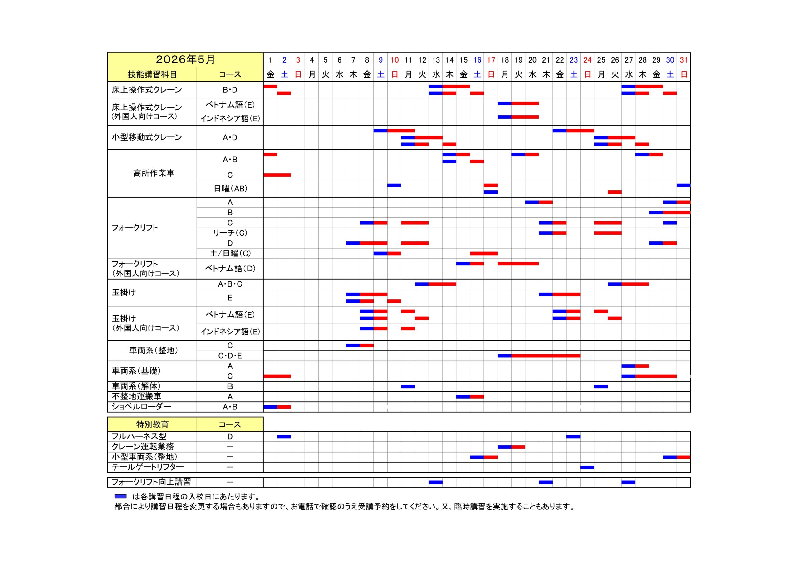 講習日程表