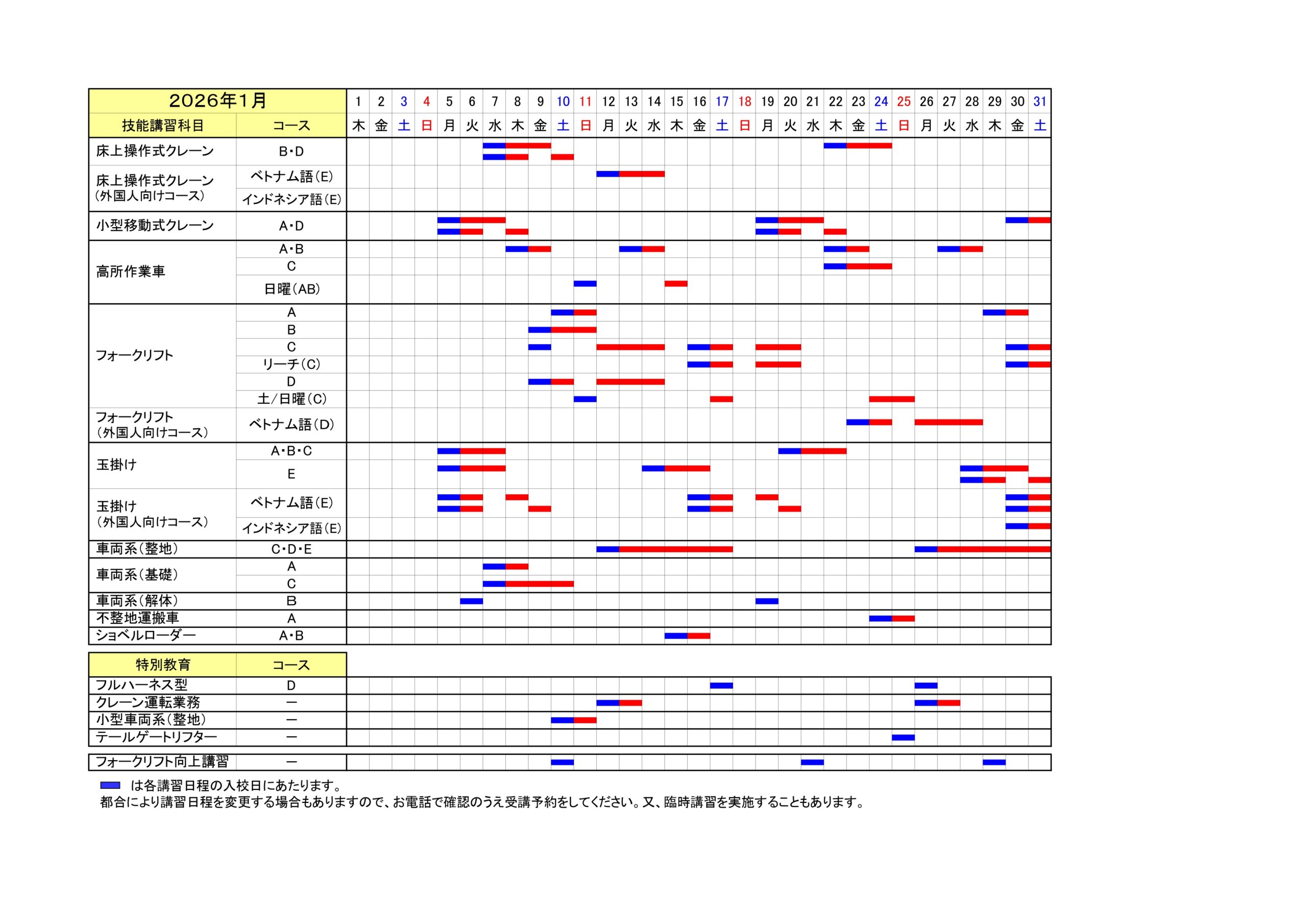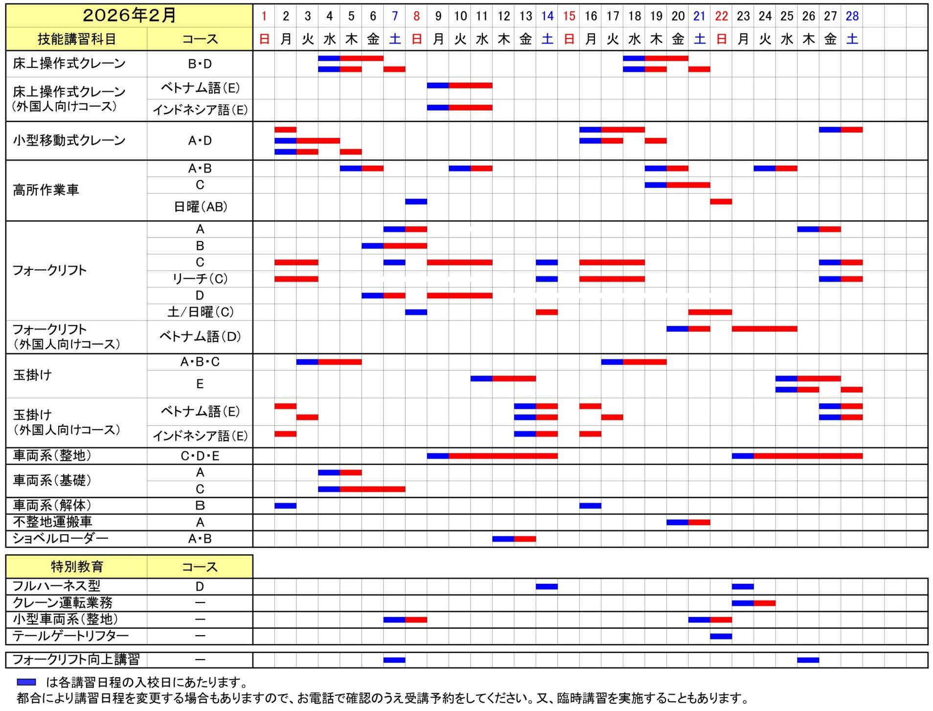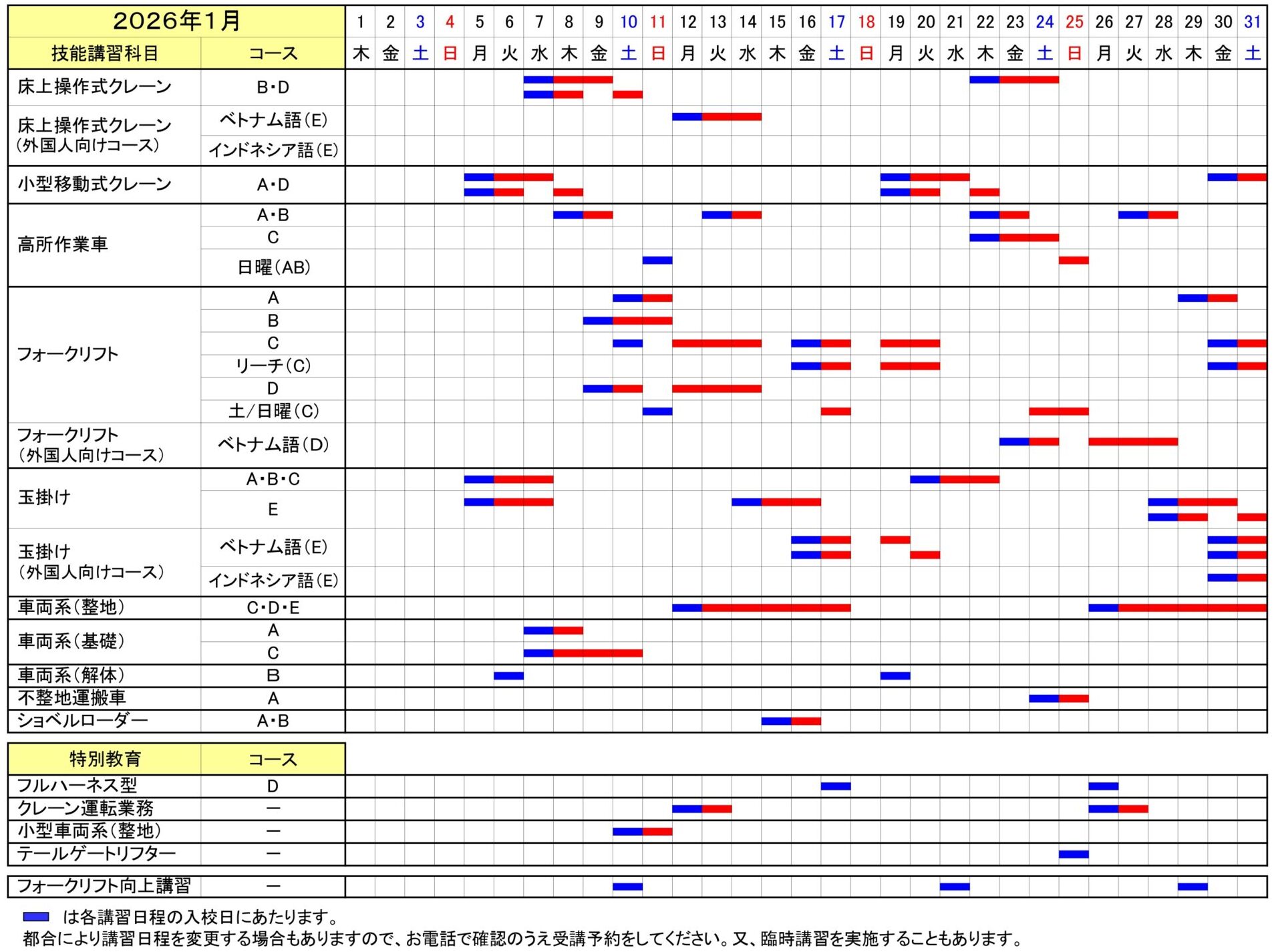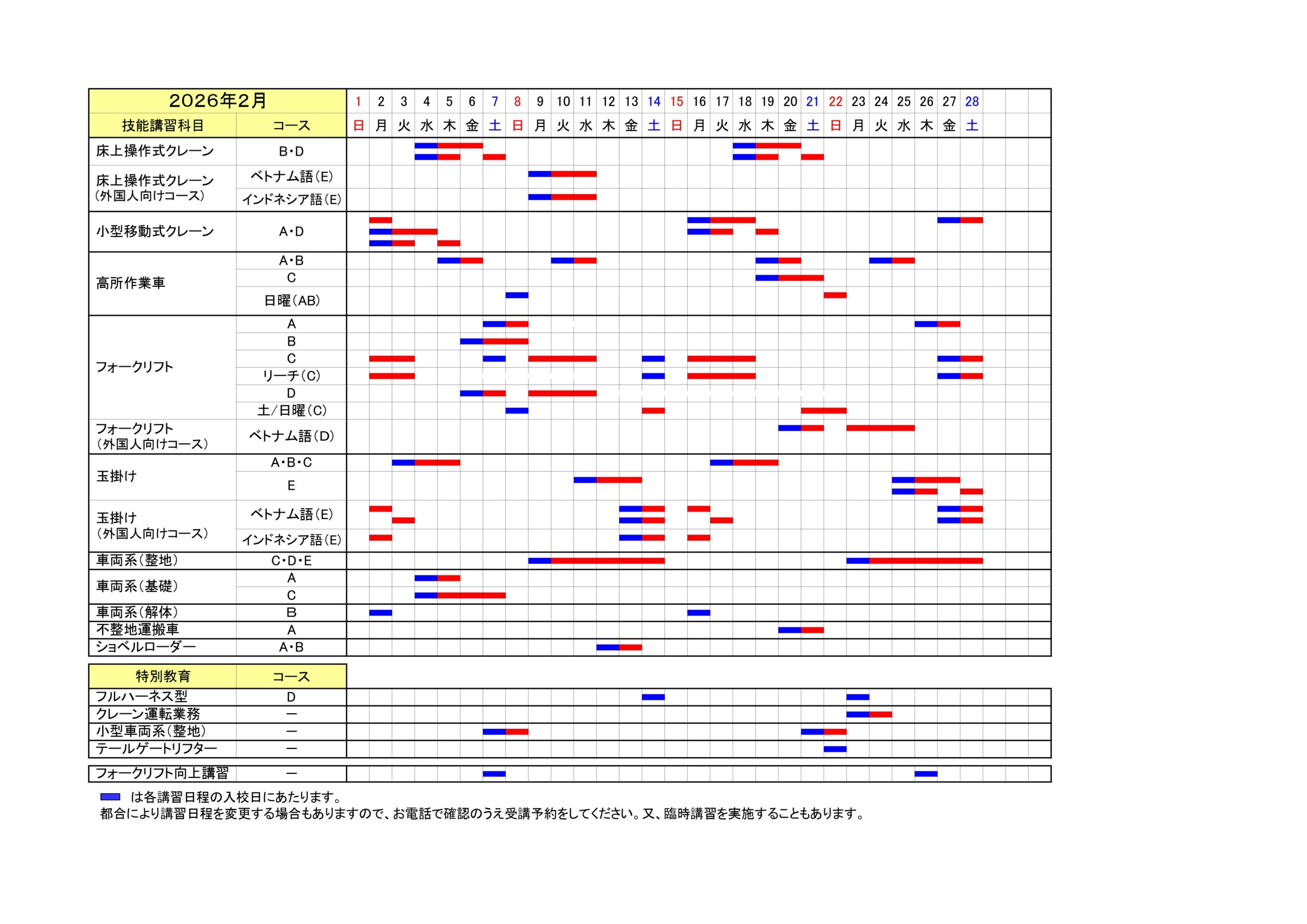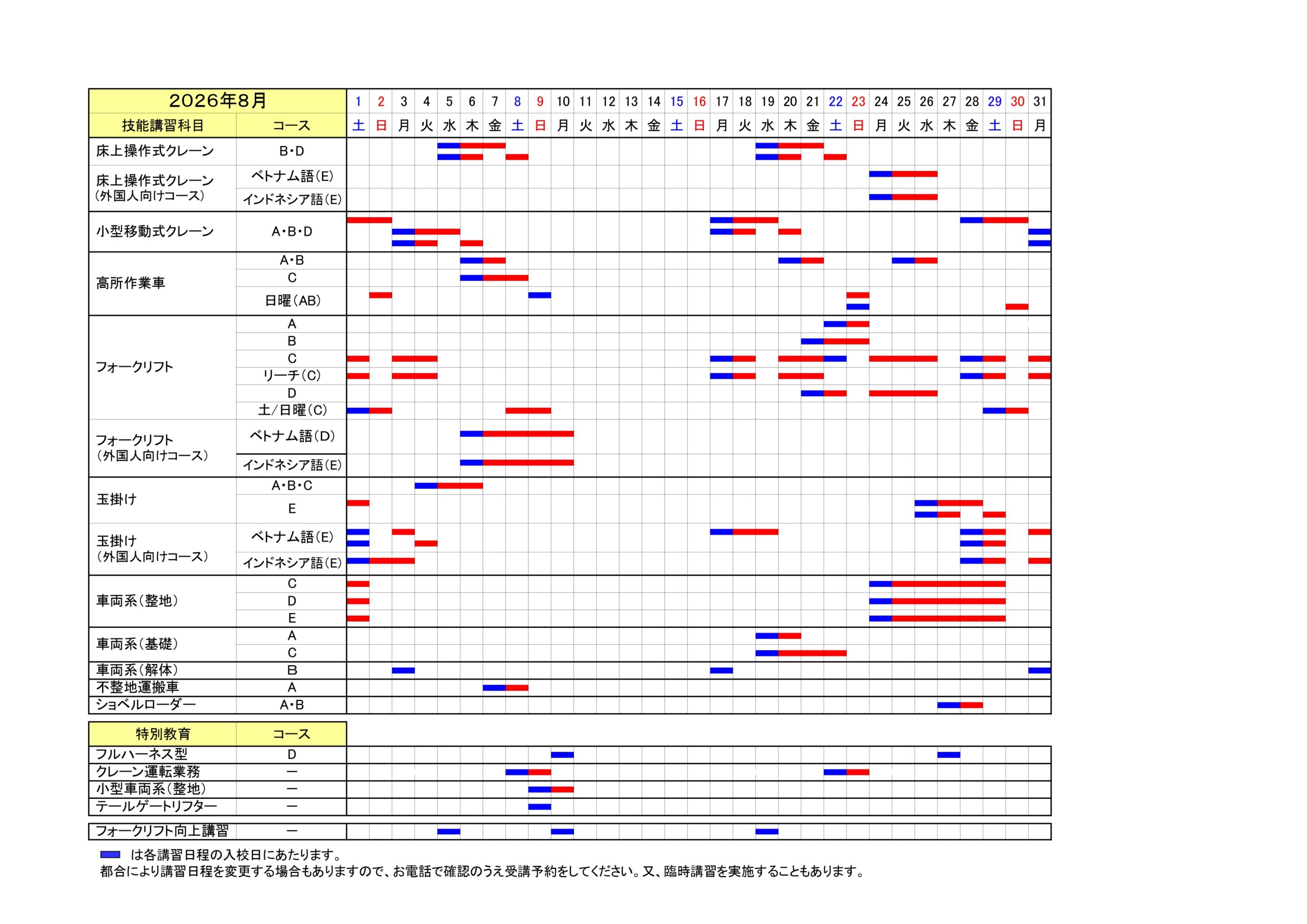講習日程表